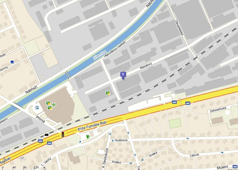 Pojedete-li od Otrokovic po třídě Tomáše Bati směr centrum města, pojedete stále rovně a v Prštném na Křižovatce uvidíte po levé ruce hypermarket Albert. Zatočíte na křižovatce doleva a po cca 20 metrech zajedete doprava do podzemního parkoviště Albertu. Projedete ním, vyjedete protějším výjezdem a pojedete doprava do Areálu Svitu. Naše firma sídlí v budově č. 113. (druhá budova za Albertem po pravé straně).